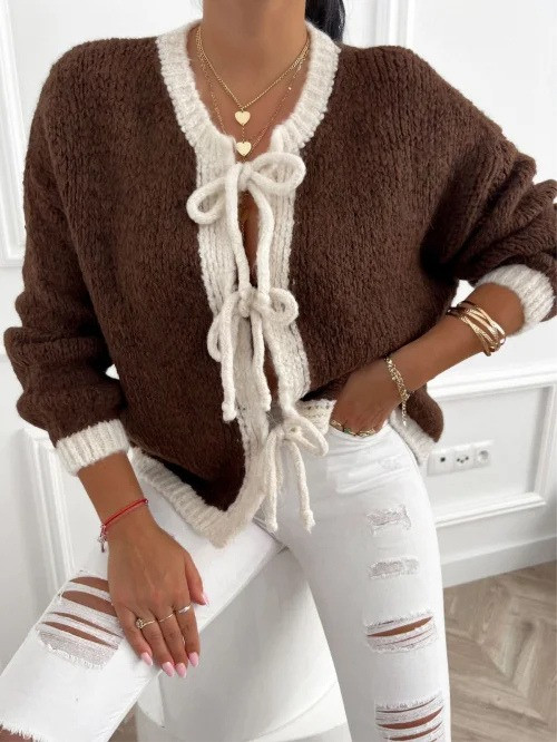 Kényelmes, meleg, kötött kardigán, romantikus megkötőkkel. S-XL méretig!