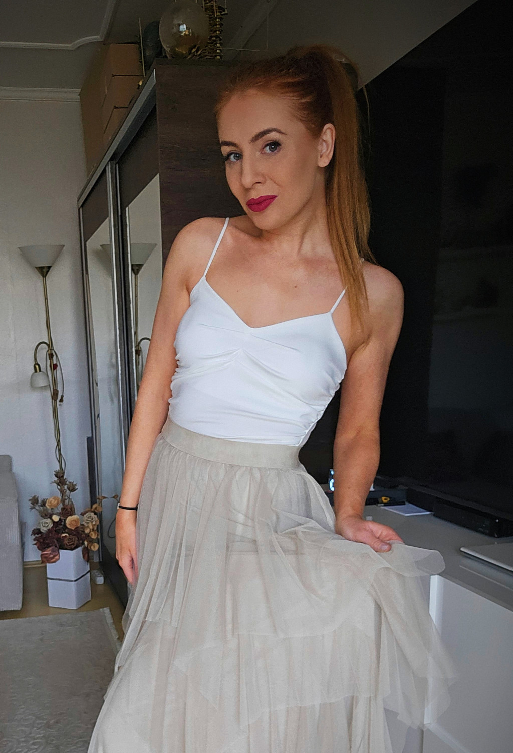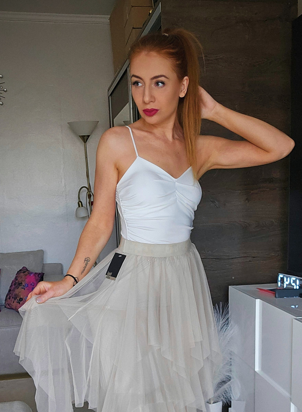 Rugalmas fehér női body formázott, ráncolt mellrésszel