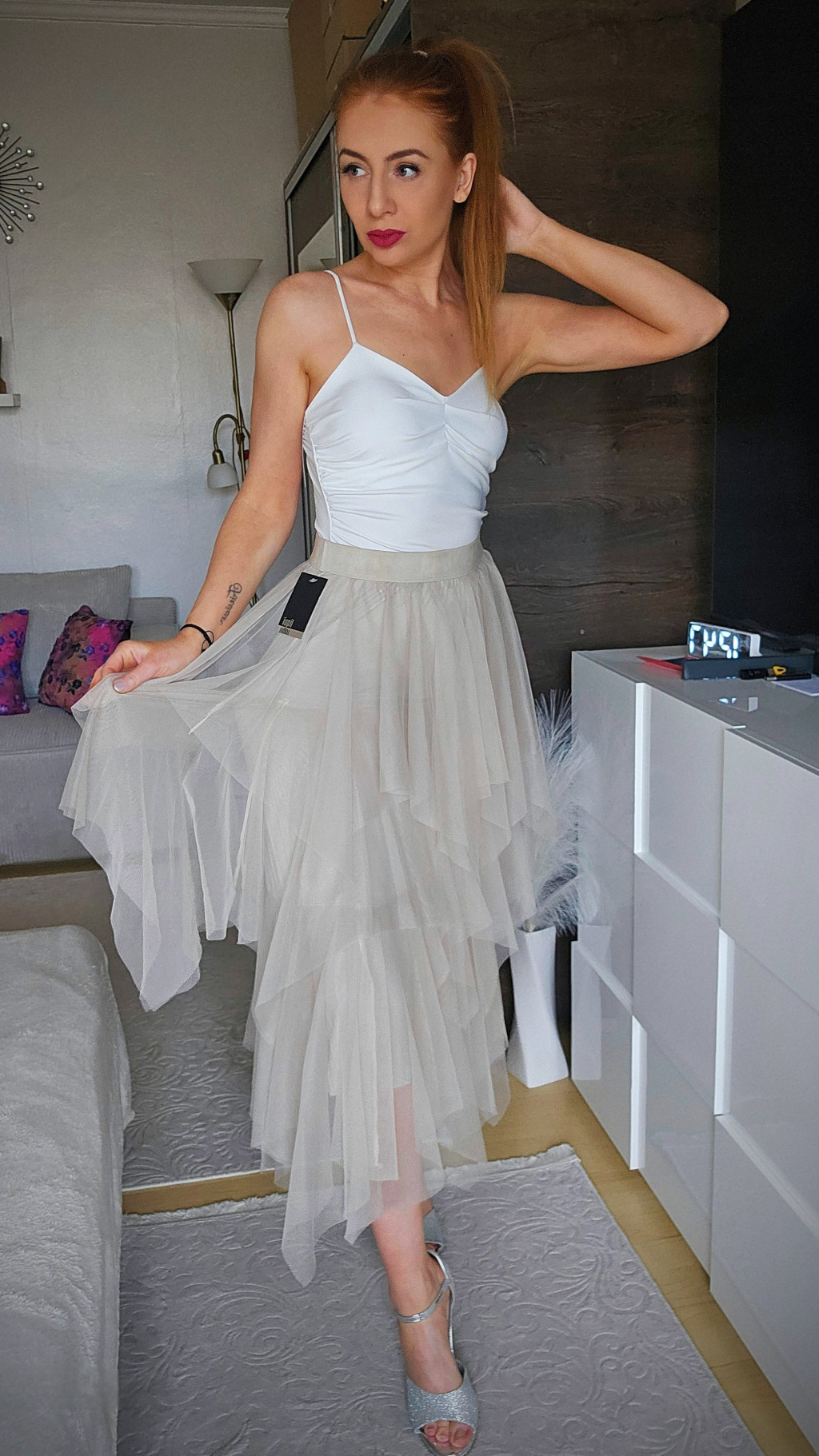 Látványos, réteges kialakítású tüll szoknya könnyű anyagból, gumis derékrésszel.