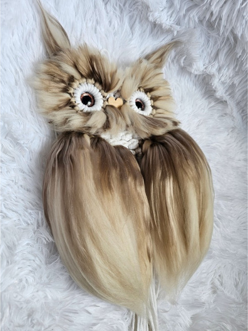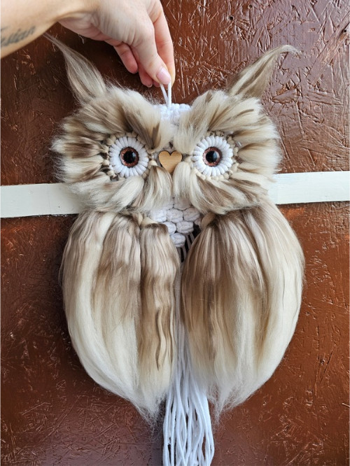 Woolly bagoly nem csak dísz, hanem egy kis kedves társ, aki vidámságot és otthonosságot csempész a mindennapokba. Fonalból és 100% ausztrál merinó gyapjúból készült, gondosan megmunkált, pihe-puha textúrával. Gyerekszobába tündéri dekoráció, de a nappaliban, hálószobában vagy akár az előszobában is remekül mutat. Ajándéknak is szívet melengető választás.